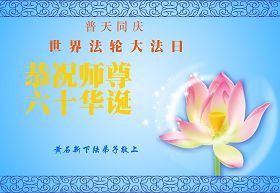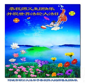 由於這場迫害,我們幾個同修遠離家鄉,遷居到陌生的城市,失去了往日集體學法的環境。我們由不熟悉、膽怯到逐漸成熟、開創出新的救度世人的環境,一步一步離不開師尊的慈悲呵護。我們有過懈怠,有過無奈,但最終在師尊的佛恩浩蕩裏從新變的精進。值此普天同慶的世界法輪大法日,弟子們隔海遙祝師父好!師父生日快樂!