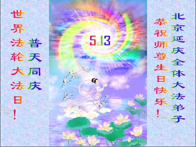 北京大法弟子叩拜,恭祝慈悲偉大的師尊生日快樂!非常想念師尊。普天同慶法輪大法日!
