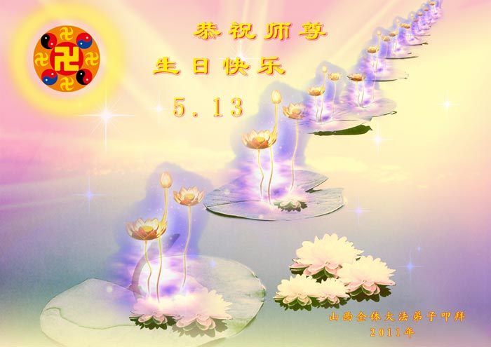 在這個日新月異,宇宙正法即將全面完成的時刻,我們恭祝師尊六十華誕快樂!並願努力講清真相、廣救世人,圓滿隨師還!!