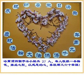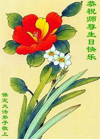 我地區全體大法弟子心情非常高興,有的準備賀卡、法輪圖形、鮮花表達對師尊生日的祝福。師尊您辛苦了!感謝師尊的慈悲苦度,我們只有不斷精進,向內找修好自己,救度更多的眾生。