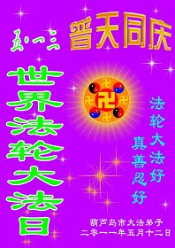 慶祝世界法輪大法日,祝師尊生日快樂,大法弟子想念師尊,盼師尊早日回來。遵照大法做,做好三件事。