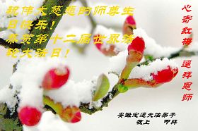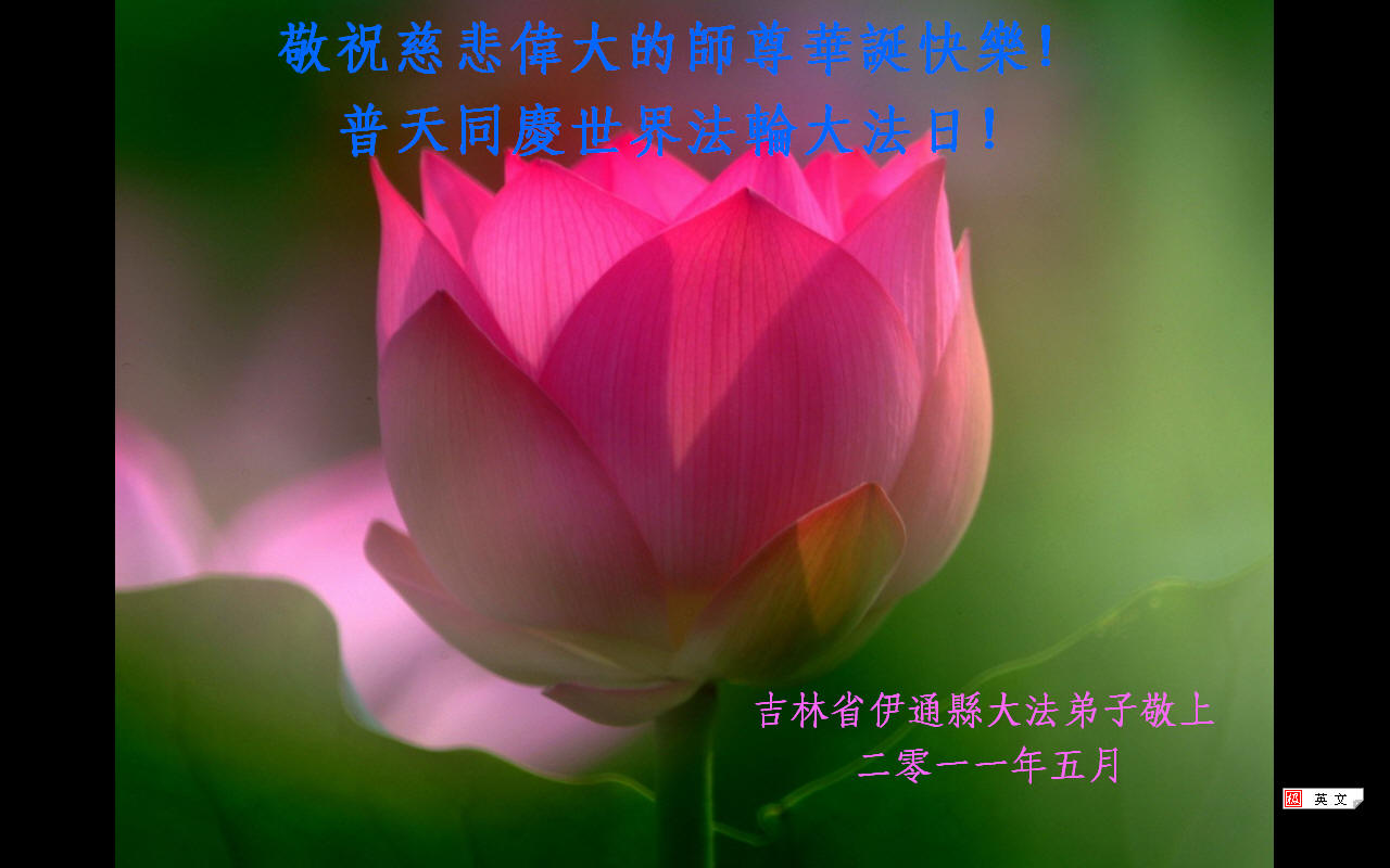 在這普天同慶法輪大法洪傳世界一九週年之際,我們向慈悲偉大的師父誠摯的問候:祝師尊生日快樂!