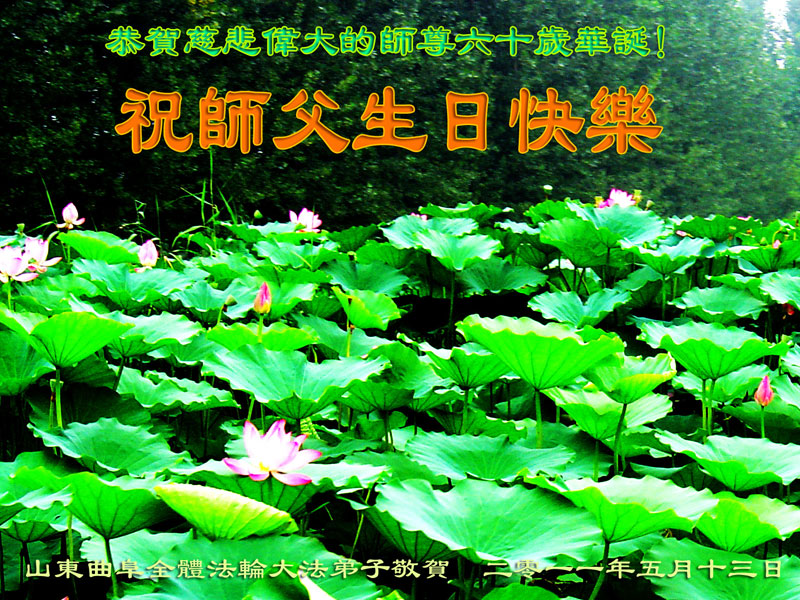 中國大陸山東、濟南、青島、臨沂、日照、沂水、蒙陰大法弟子衷心恭祝慈悲偉大的師尊六十華誕!