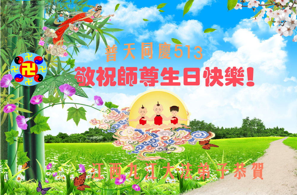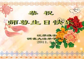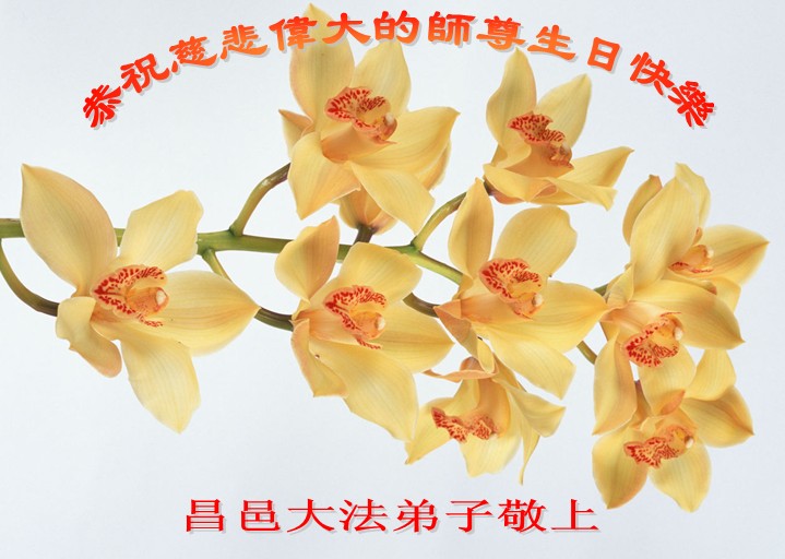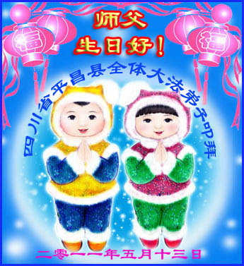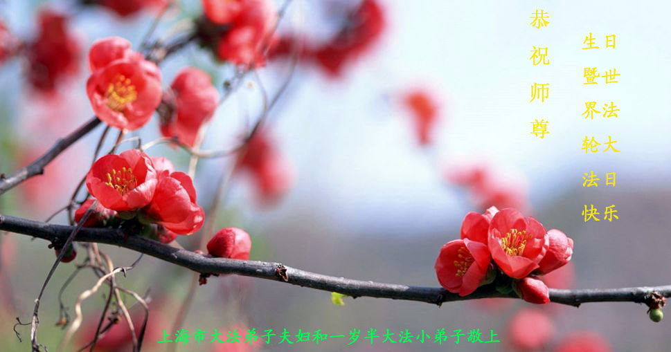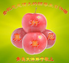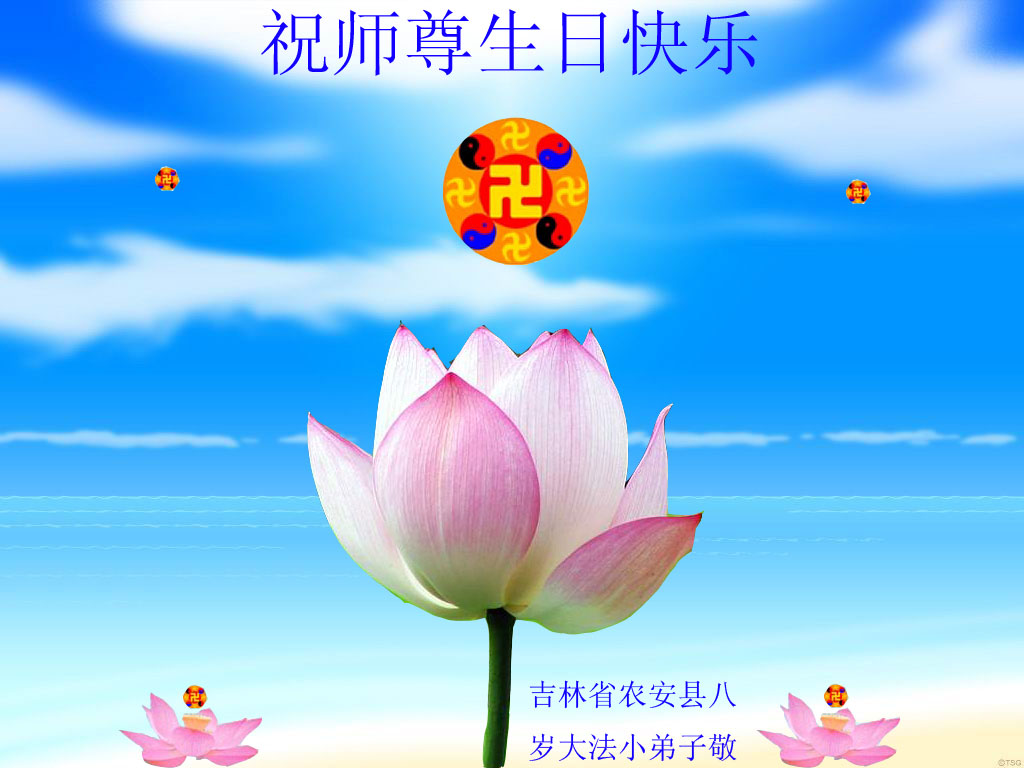 尊敬的師父您好!在您生日和法輪大法日來臨之際,我們更加想念您,誠摯恭祝師尊生日快樂!弟子一定牢記師尊的教誨,珍惜和大法的緣份,堅持以法為師,嚴格按「真、善、忍」的最高法理紮實的修好自己,繼續做好三件事,完成史前誓約,隨師尊回家。