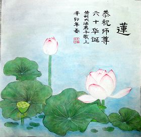 甘肅蘭州大法弟子的美術作品「蓮」──祝師尊六十華誕!
