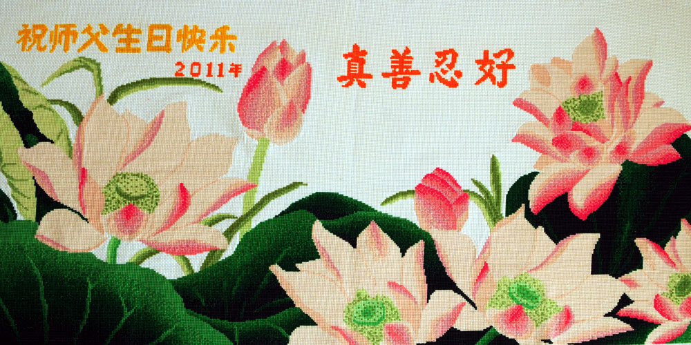 甘肅蘭州大法弟子創作刺繡:普天同慶──祝師尊六十華誕!