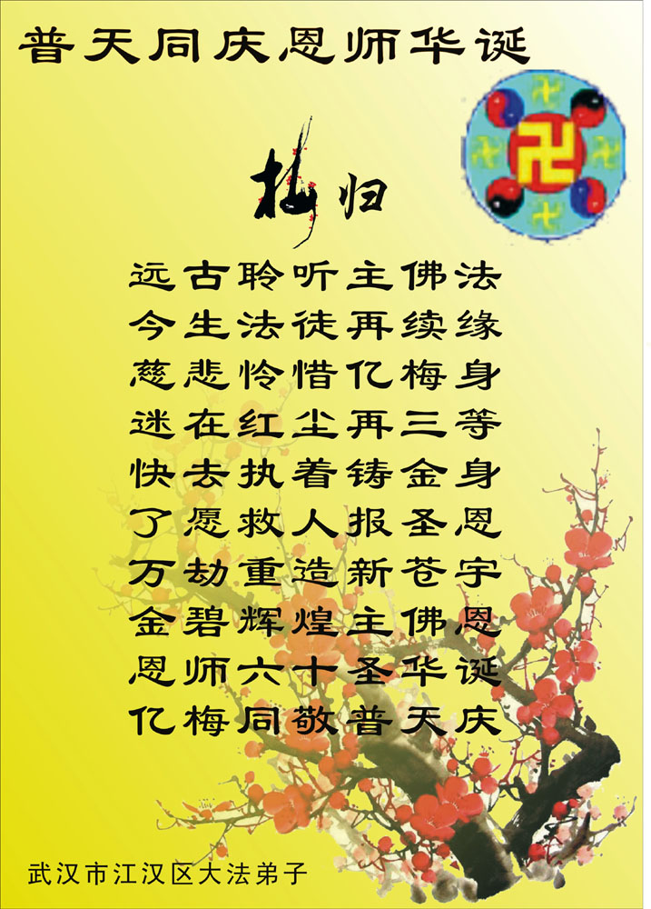 武漢市江漢區大法弟子恭賀師尊六十華誕!