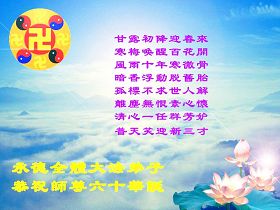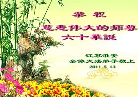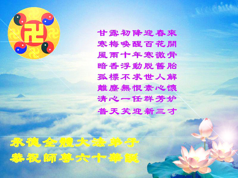 在此我們借明慧一角恭祝師父六十華誕!祝世界513法輪大法日!!
