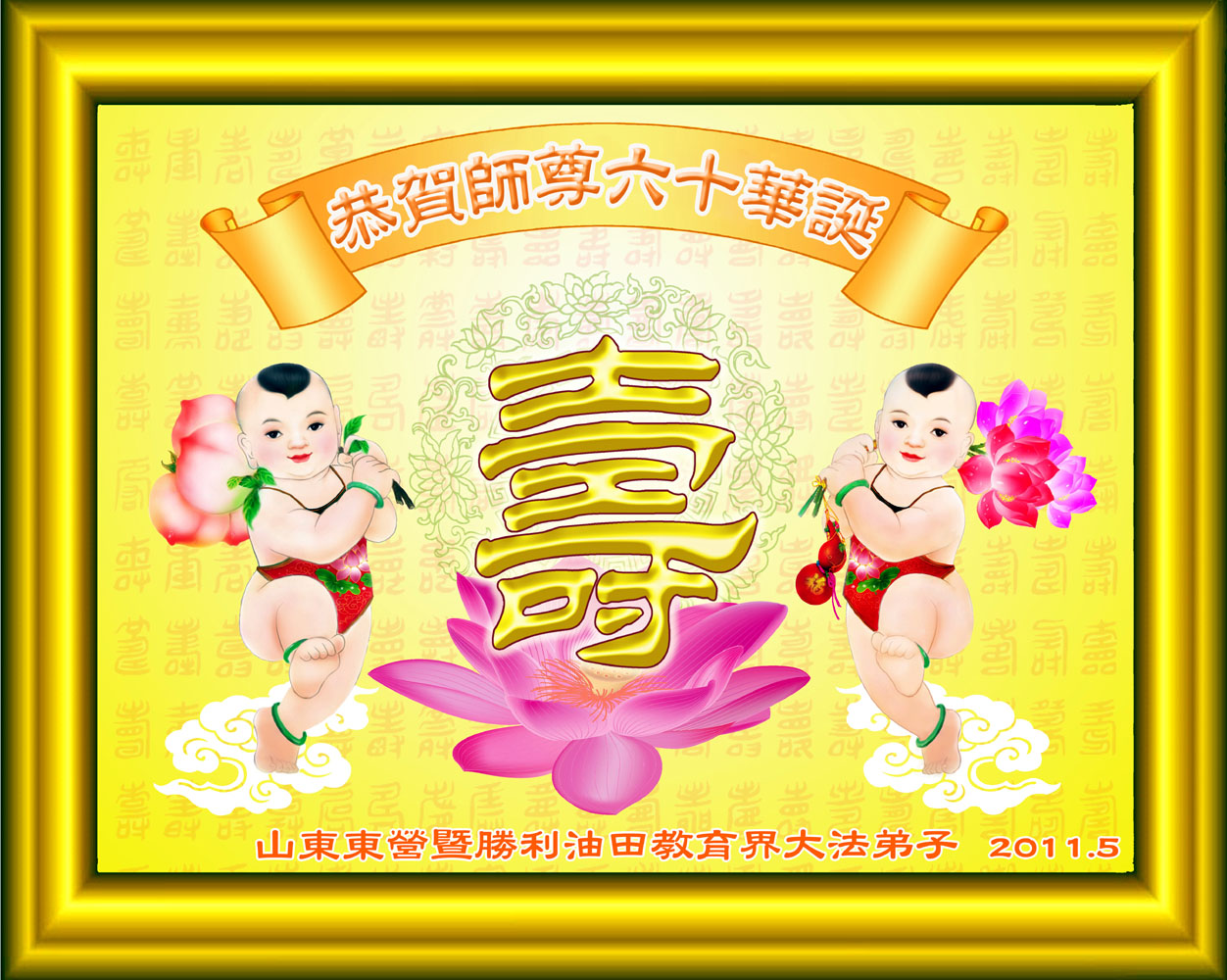 山東東營勝利油田教育界大法弟子恭祝師尊六十華誕!