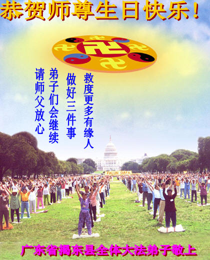 廣東省揭東縣全體大法弟子恭祝師尊生日快樂!