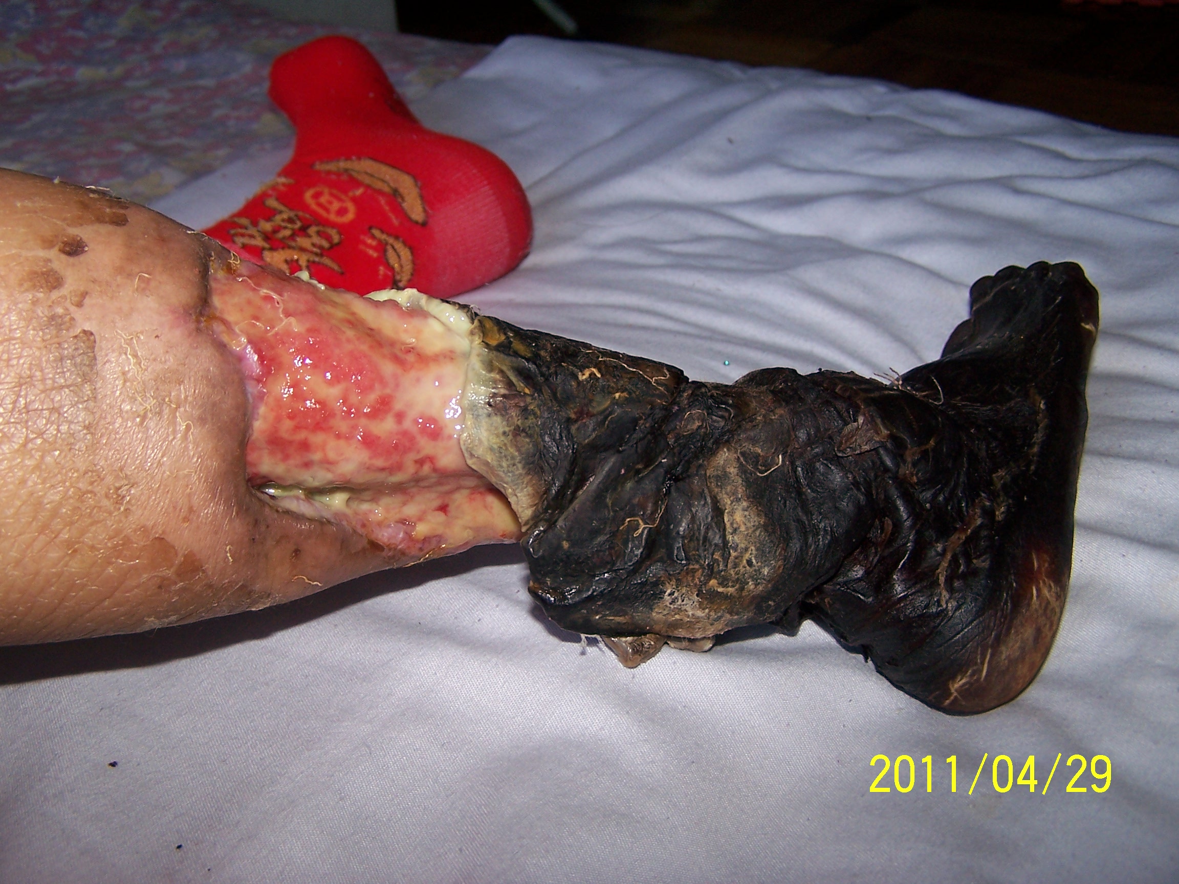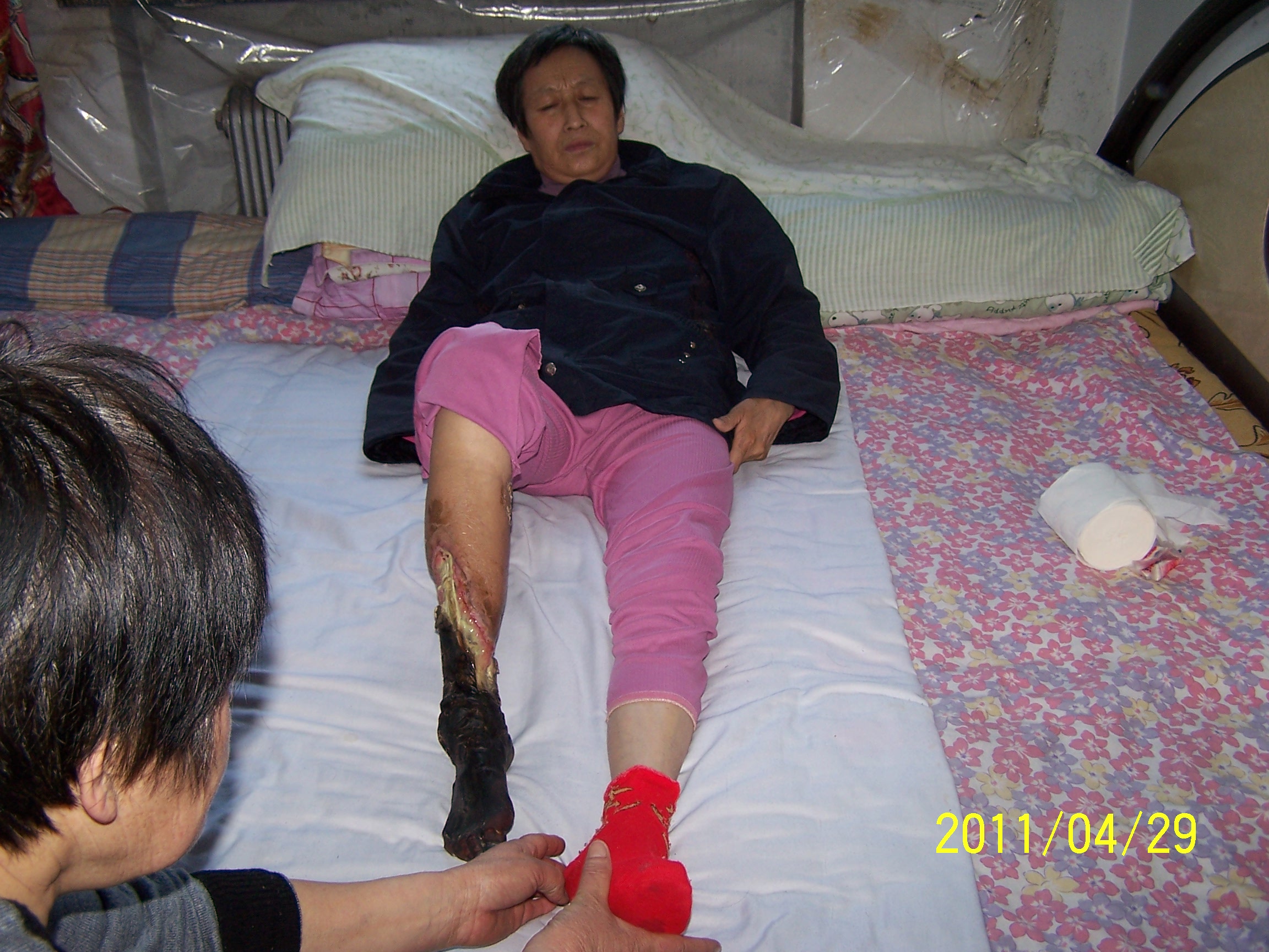 現在宋會蘭的腿腳壞死愈加嚴重,大部份潰爛,筋骨裸露,不忍卒睹,劇痛使宋會蘭無法忍受。親人痛苦不堪,其女兒整日以淚洗面,壓力如山。本市二大醫院都不收留(有診斷),叫去外地治療,告訴需要費用幾十萬,並伴有生命危險。