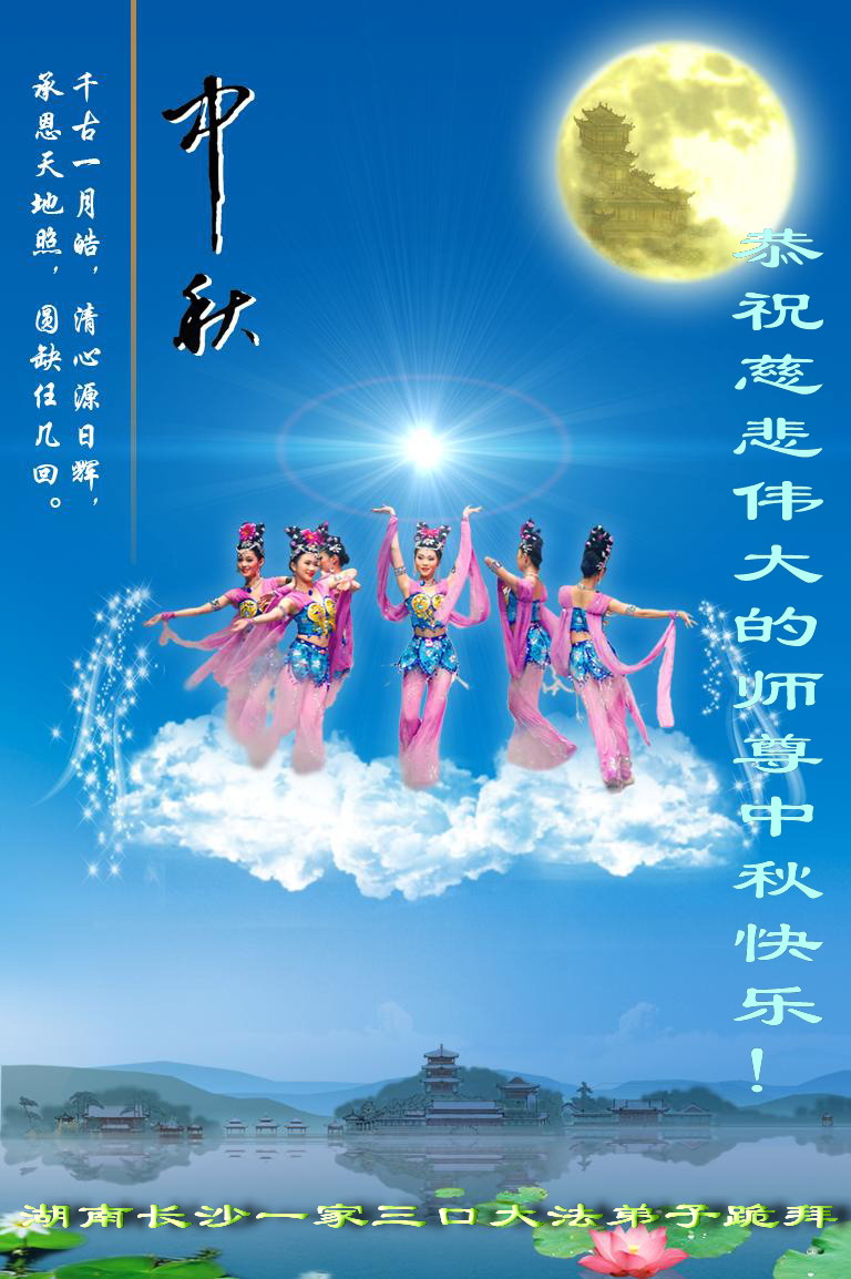湖南長沙一家三口大法弟子恭祝慈悲偉大的師尊中秋快樂!