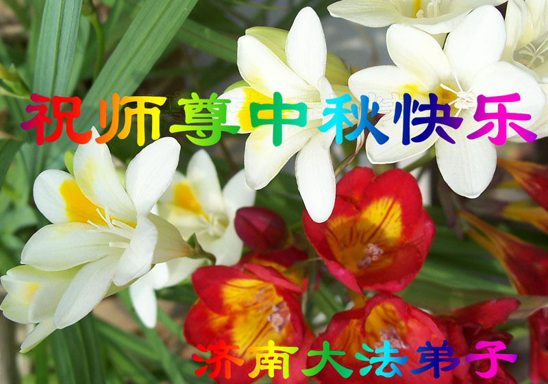 濟南市歷下區一學法小組大法弟子恭祝慈悲偉大的師尊中秋快樂!
