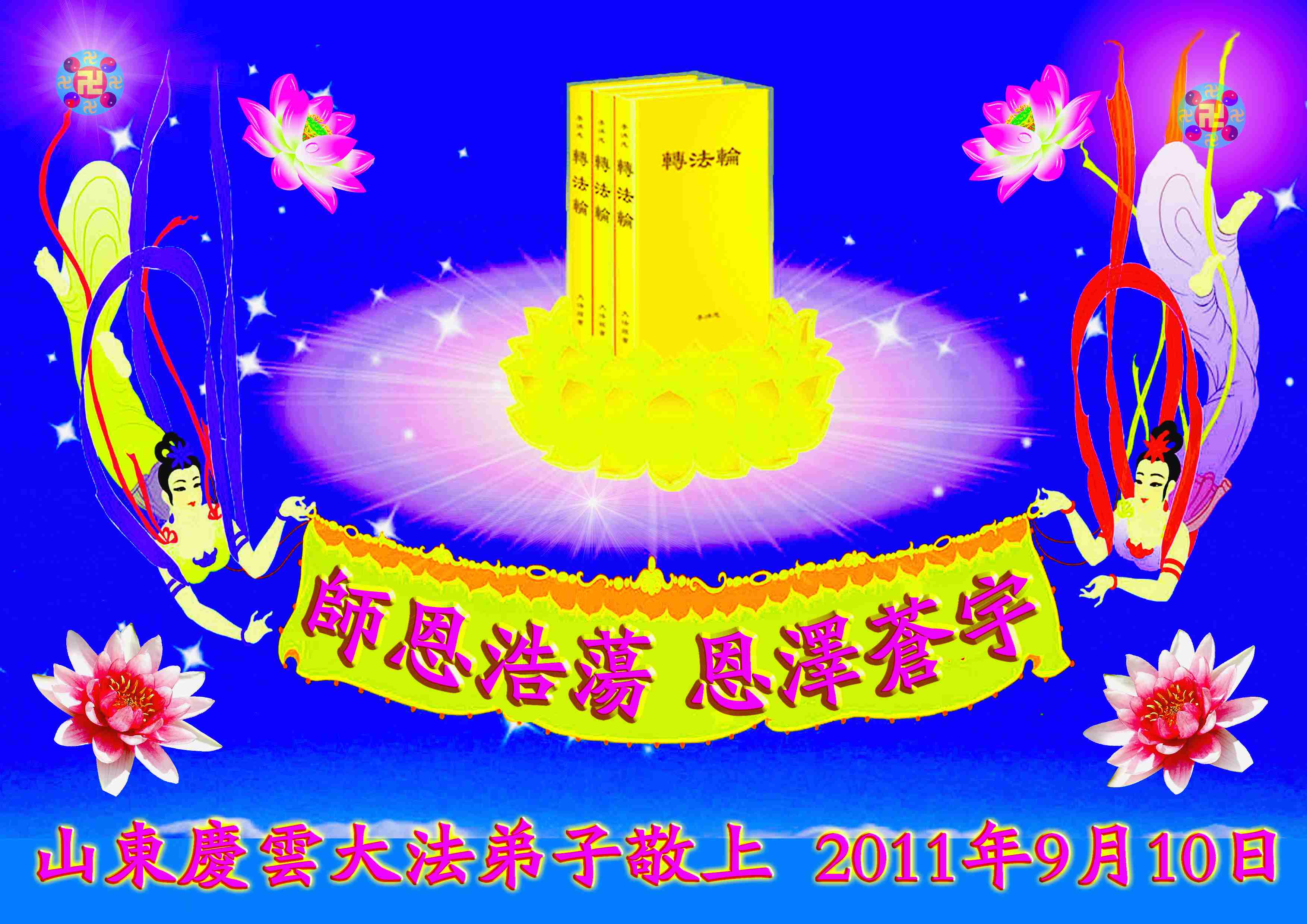 值此2011年中秋節來臨之際,我們日照全體大法弟子恭祝師父節日快樂!師父啊,您說某年的春天,大法弟子會堂堂正正的和您相見。我們都盼望著那一天早日到來!