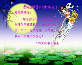 大陸大法弟子值此中秋佳節到來之際,恭祝慈悲、偉大的師父節日快樂!