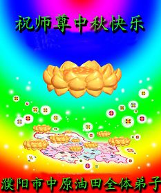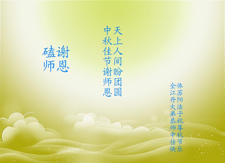 中秋節到了,弟子恭祝師尊節日快樂,也請師尊放心,弟子一定會遇事向內找,堅持學法,用神的正念正行走好最後的路,做一名真正的大法弟子,做好三件事,兌現自己的誓約。