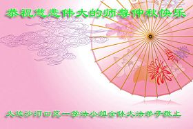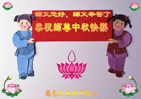 在中秋節來臨之際,瀋陽鐵路系統大法弟子、瀋陽教育系統大法弟子恭祝慈悲、偉大的師尊中秋節快樂!每逢佳節倍思親。弟子想念您!我們一定做好三件事,不辱使命、不負重託,兌現史前誓約。弟子叩拜師恩!