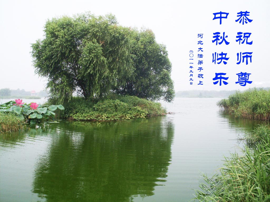 尊敬的師尊:我們很想念師尊,值此中秋節來臨之際,謹代表定興縣全體大法弟子敬祝您中秋節日快樂!我們一定遵照師父的要求,做好三件事,向內找,整體配合,廣傳真相,救度更多的眾生,完成我們的史前大願,圓滿隨師還。