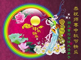 在此中國傳統中秋佳節裏,我代表湖北黃石全體大法弟子借明慧網遙寄對師尊的思念與問候!恭祝師尊中秋節快樂!
