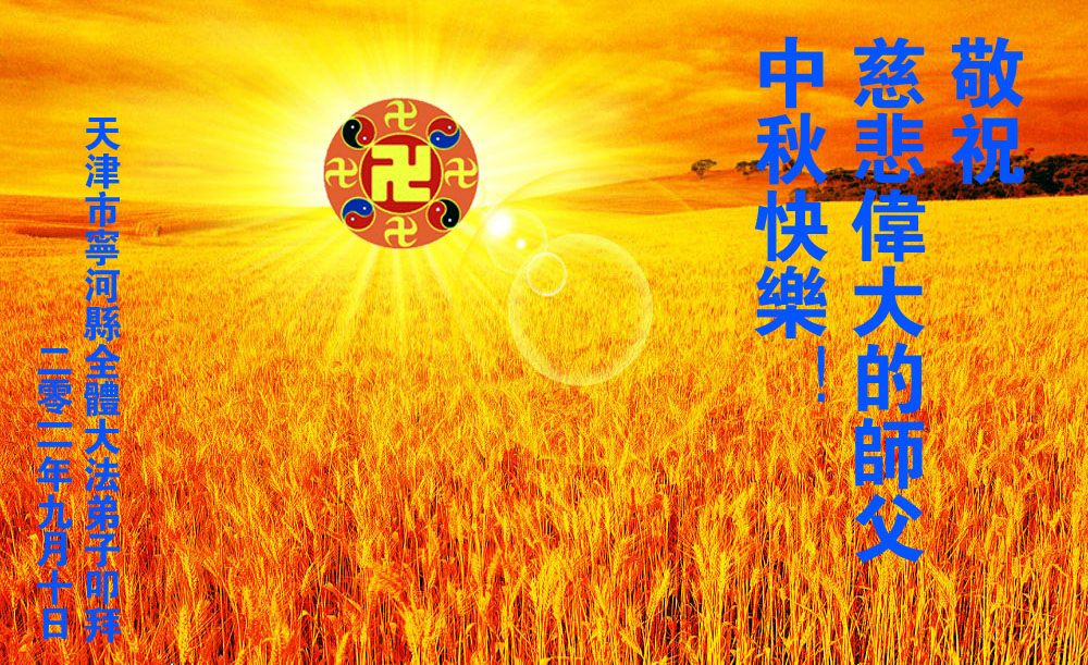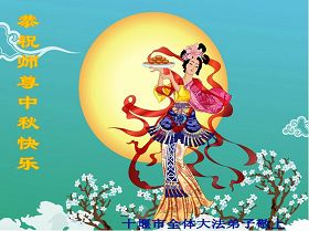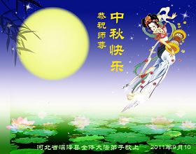 值此一年一度的中秋節來臨之際,瓦房店一大法弟子代表自己及其家人和所在的學法小組的全體大法弟子向慈悲偉大的師尊──李洪志師父問好!祝師父節日愉快!祝師父的家人節日快樂!