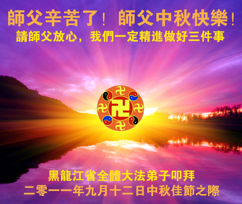 中華民族的傳統節日中秋節到了,農安縣全體大法弟子叩謝師尊的救度之恩,祝師尊中秋節快樂!我們一定擔負起自己的責任,做好三件事,做合格的大法弟子。