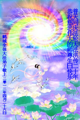 鶴城全體大法弟子恭祝師尊生日快樂!普天同慶法輪大法洪傳二十週年!