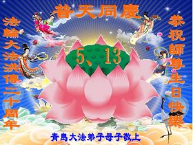 山東省青島一大法弟子家庭全體大法弟子恭祝慈悲偉大的師尊生日快樂暨法輪大法洪傳二十週年!