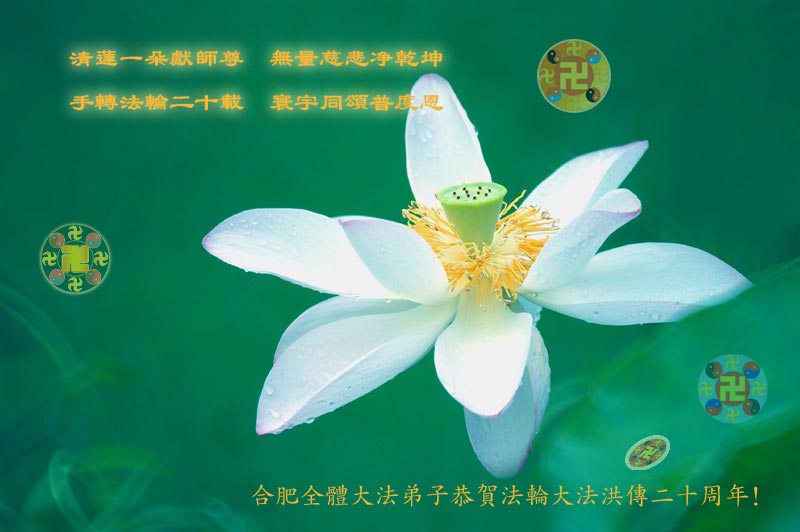 安徽省合肥全體大法弟子恭祝慈悲偉大的師尊生日快樂!同賀法輪大法洪傳二十週年!