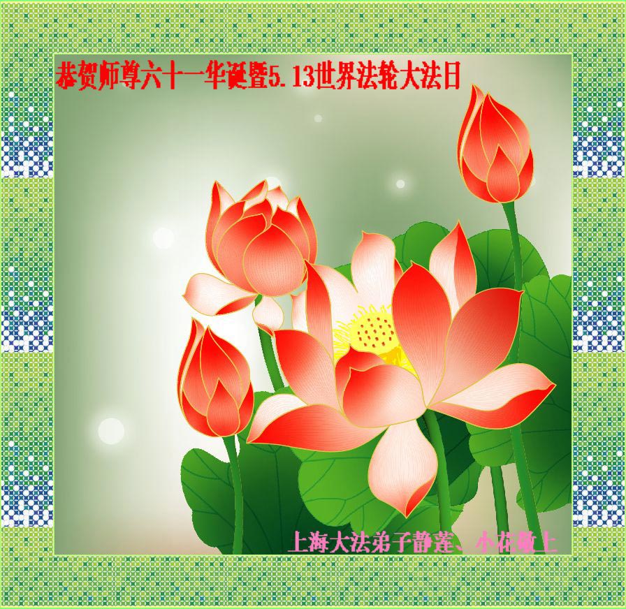上海大法弟子靜蓮、小花恭賀師尊華誕暨5.13世界法輪大法日!