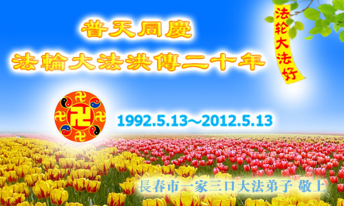 吉林省長春一家三口大法弟子恭祝師尊生日快樂!