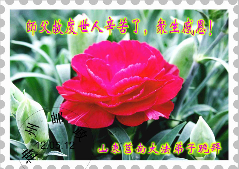 【明慧網二零一二年五月十三日】二十年前的五月,李洪志師父在中國長春將法輪大法公開傳出於世,二十年後的今天,法輪大法洪傳全球,億萬修煉者在大法「真善忍」的指導下道德昇華,獲得身心健康。十三年來,每年的五月十三日,世界各地的法輪大法弟子,都向明慧網寄來賀卡賀詞,慶祝「世界法輪大法日」,恭賀師尊華誕。這裏是明慧編輯部已整理出來的部份來自中國大陸大法弟子的賀卡、賀信。