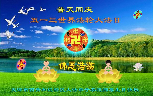 天津市西青和紅橋區大法弟子恭祝師尊生日快樂!普天同慶5.13世界法輪大法日!