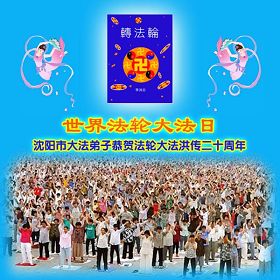 遼寧省瀋陽大法弟子恭賀法輪大法洪傳二十週年暨世界法輪大法日!