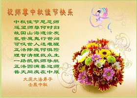 在此中秋佳節之際,謹代表遼寧省遼陽市大法弟子,恭祝慈悲偉大的師尊節日快樂,弟子們一定能夠做好三件事,救度更多的眾生,勇猛精進。