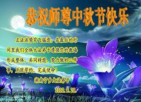 大陸大法弟子向師尊問好,祝師尊中秋節愉快,弟子們會做好三件事,堅修大法到底。