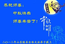 山東臨清全體大法弟子恭祝慈悲偉大的師尊二零一二年中秋節快樂!