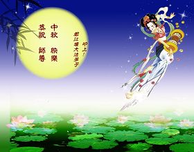 【明慧網二零一二年九月三十日】值此中秋佳節之際,中國大陸和海外的大法弟子紛紛寄來賀卡賀詞,恭祝慈悲偉大的師尊中秋快樂,感謝師尊的慈悲救度。以下是部份大陸大法弟子的賀卡和賀詞。