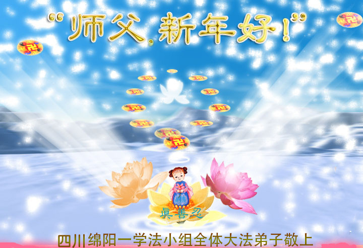 四處四川省綿陽一學法組全體大法弟子懷著無限信師信法敬師敬法、無限感恩的心恭祝偉大慈悲的師父新年快樂!