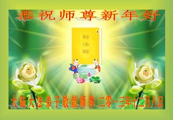 在新的一年裏,弟子一定謹記師尊的教誨,做好三件事,跟上正法進程,不負師尊的良苦用心。讓師尊多一份歡心少一份操勞。