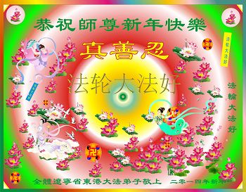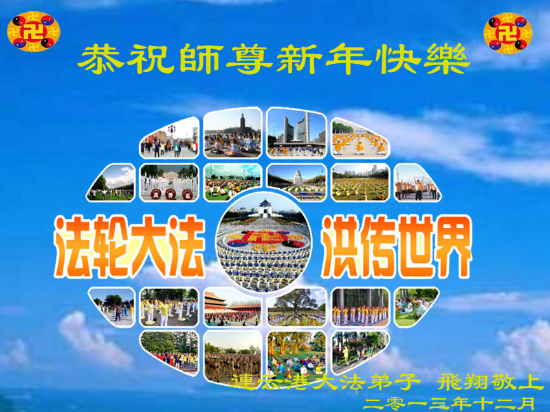 在這辭舊迎新的時刻,用盡人間最美好的語言都表達不盡弟子們對師尊的感恩。此時此刻我們撫順的大法弟子更加想念遠隔萬里的師父,我們深感師恩浩蕩!無比思念恩師!我們盼望師尊早日歸來,與大陸大法弟子團聚。二零一三年的歲月是在師父的嘔心瀝血中走了過去,師父為宇宙,為眾生,為我們大法弟子承受著巨大的苦難。在新的一年裏,我們撫順地區全體大法弟子要更加勇猛精進,多學法,學好法,證實法,做好三件事,救度更多的眾生。不辜負師尊的慈悲苦度,讓師尊少一些操勞,多一份欣慰。緊跟正法進程,完成我們的史前洪願!圓滿隨師還。