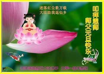 師父您好!師父您辛苦了!在這一年中,我們通過不斷的認真學法,能夠保持一個清醒的頭腦,比較能穩健理智的做著三件事,在正法修煉的路上越來越成熟了。我們有信心在新的一年中努力做好。用法衡量自己,提醒自己把握好,走好走正最後的路,完成自己來世的使命。
