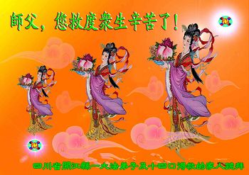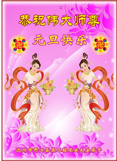 師父您好!恭祝師尊新年快樂!我們姐妹倆感謝師父慈悲救度,在新的一年裏我們要更加精進,努力做好「三件事」、多救人,讓師父少一份操勞,多一份欣慰。