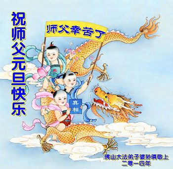 廣東省佛山大法弟子婆孫倆祝師父元旦快樂!