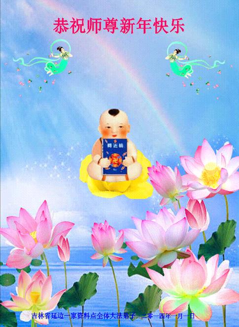 慈悲偉大的師父:新年快到了,我們松原地區的大法弟子想念師父。祝慈悲偉大的師尊新年好!在師父的慈悲呵護下我們走過了二零一三年,在新的一年裏,弟子們會精進實修,做好三件事,請師父放心。