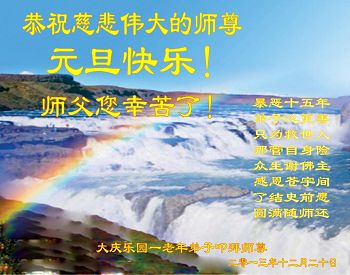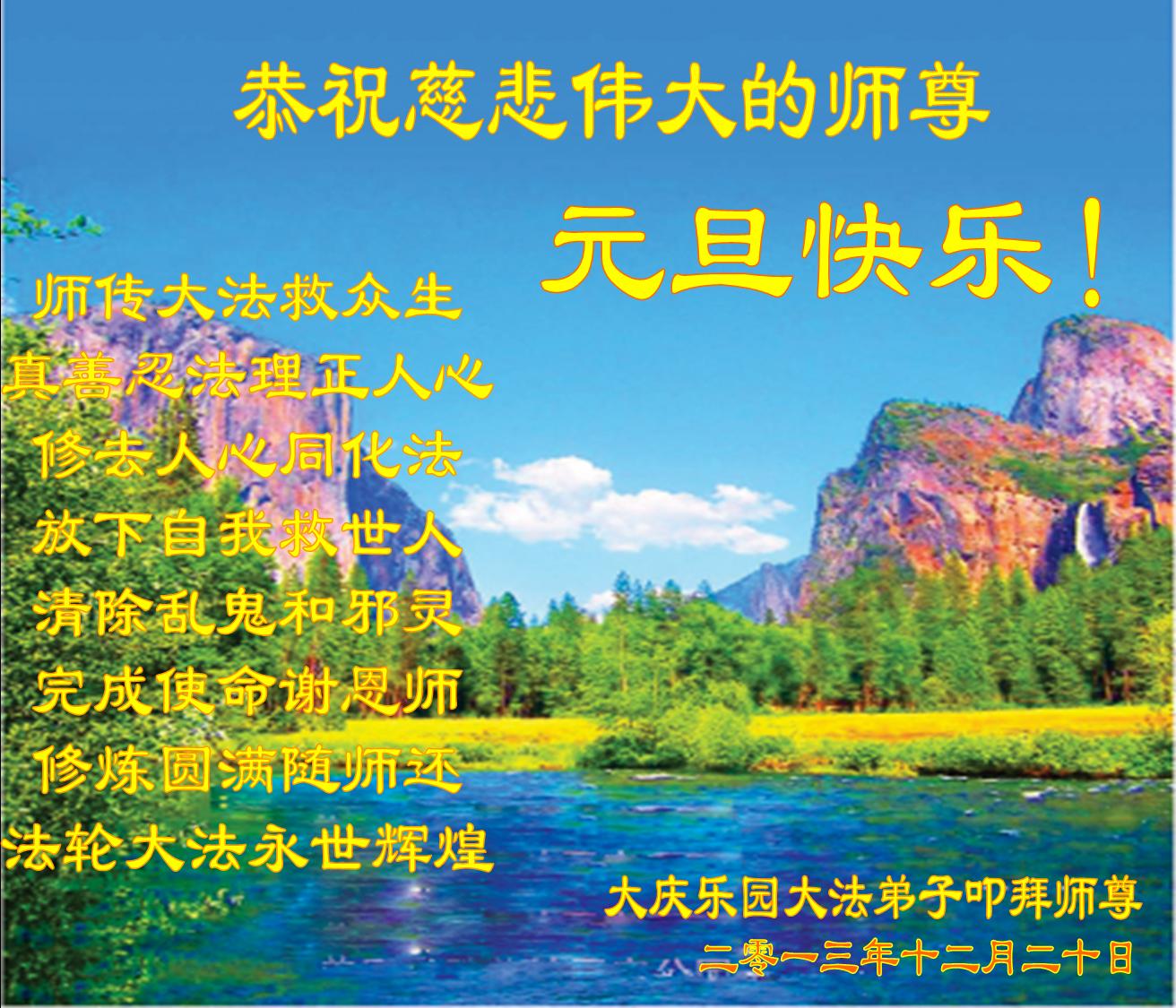 黑龍江省大慶樂園一老年大法弟子恭祝慈悲偉大的師尊元旦快樂!