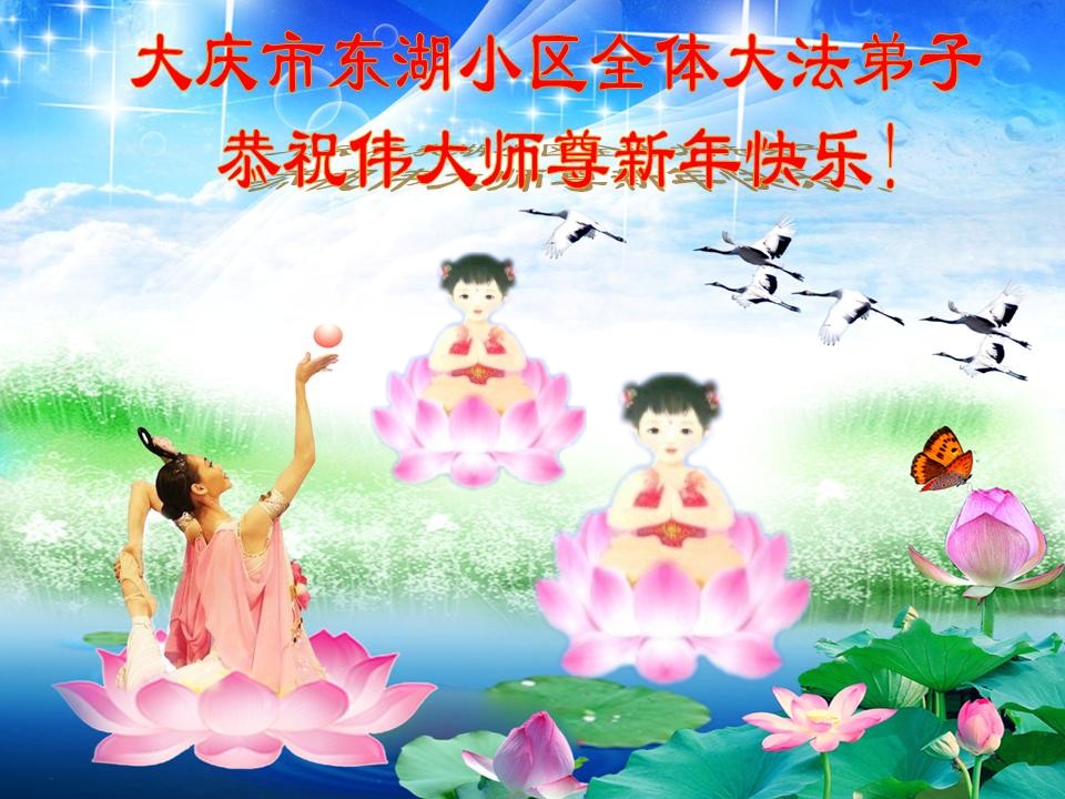 黑龍江省大慶東湖小區全體大法弟子恭祝偉大的師尊新年快樂!