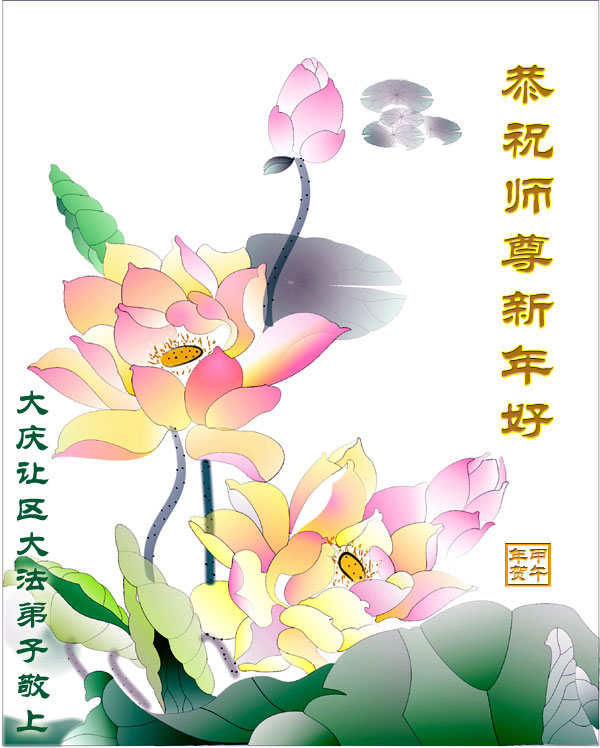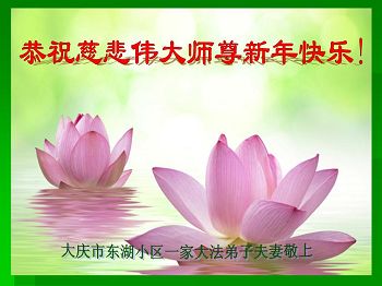 黑龍江省大慶東湖小區一家大法弟子夫妻恭祝慈悲偉大的師尊新年快樂!