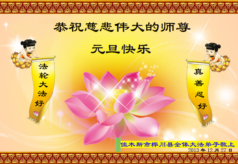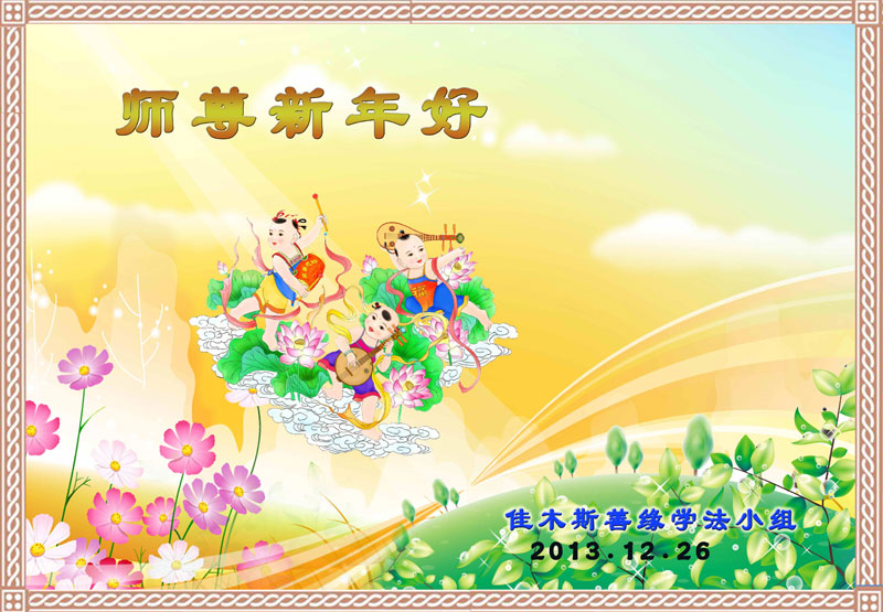 黑龍江省佳木斯大法弟子及家人恭祝慈悲偉大的師尊:新年快樂!