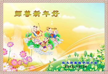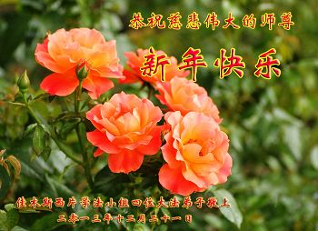 我們全家同修恭祝慈悲偉大的師尊元旦快樂!在新的一年裏要多學法學好法,抓緊時間多救人,做好三件事,兌現自己的誓約,做一個讓師父放心的弟子。
