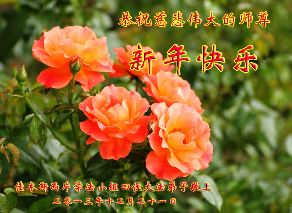黑龍江省佳木斯西片學法小組四位大法弟子恭祝慈悲偉大的師尊:新年快樂!